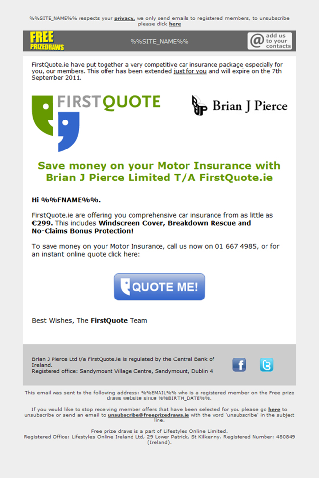 Subject line: Save Money On Your Motor Insurance With FirstQuote.ie